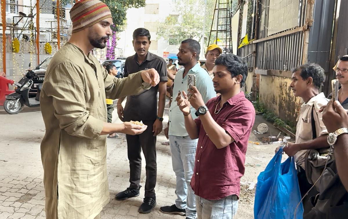 Angad Bedi was at the gurdwara too, as he offers some prasad.