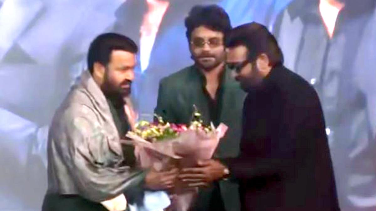 As the three stars stepped onto the stage, Nagarjuna paused to congratulate Mohanlal on his Dadasaheb Phalke Award.