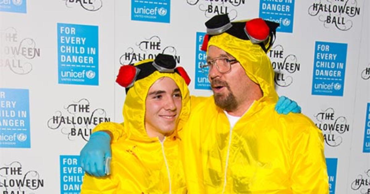 The British filmmaker and his son with pop icon Madonna dressed up as Walter White and Jesse Pinkman, the lead characters of Vince Gilligan's highly acclaimed crime drama Breaking Bad.