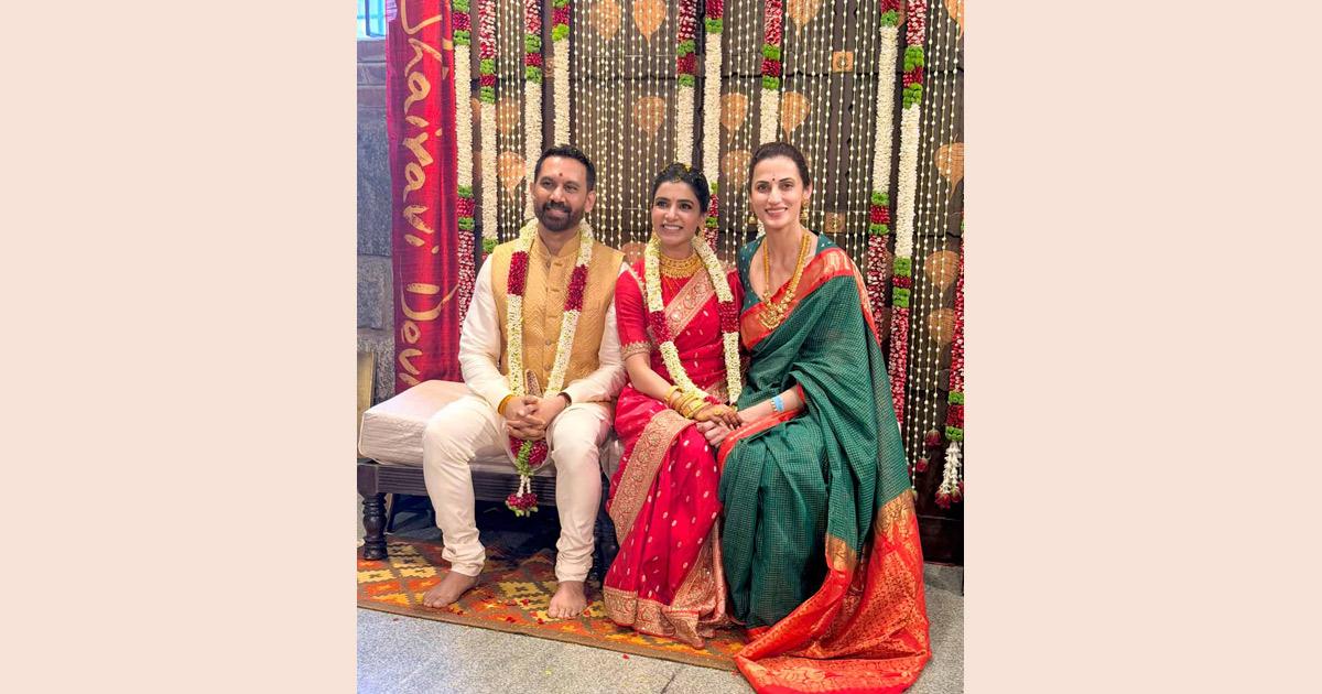 Close friend Shilpa Reddy shared more pictures of the bridal couple from the Ling Bhairavi temple in Coimbatore.