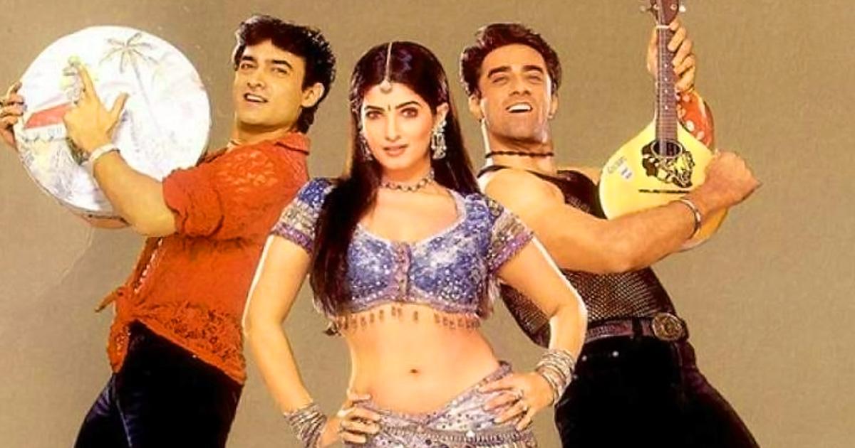 IMAGE: Aamir Khan and his brother Faisal Khan with Twinkle Khanna in Mela.