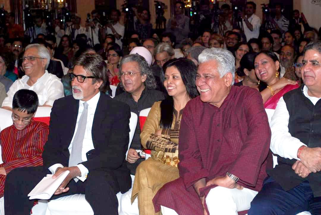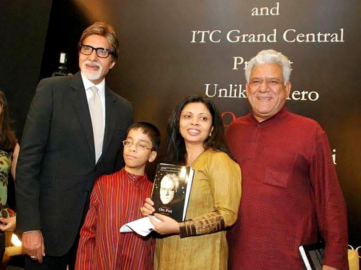 The Puri family with Amitabh Bachchan at the release of Om's biography.