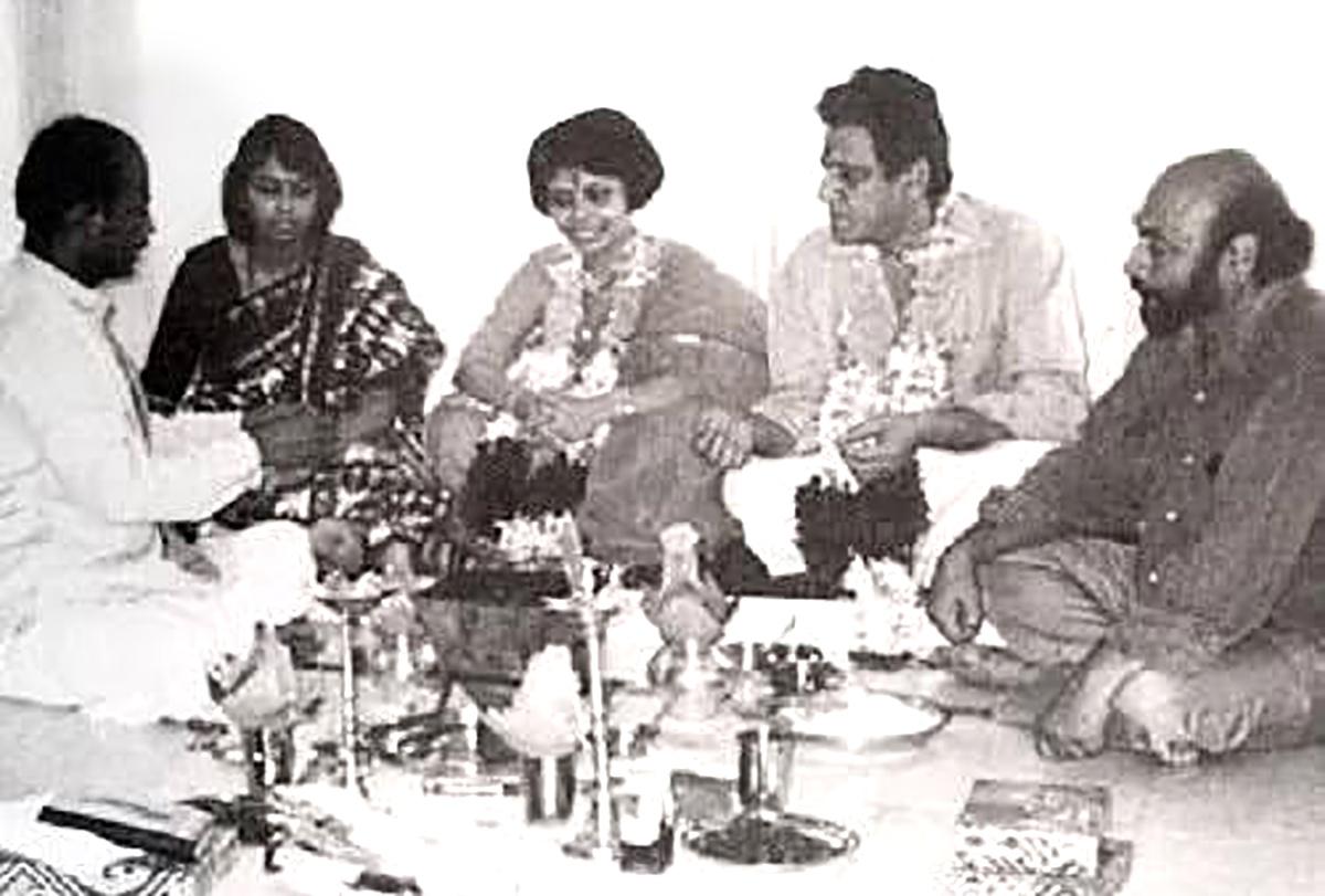 Om married Nandita in 1993 in the presence of a few friends. Govind Nihalani is seated next to Om.