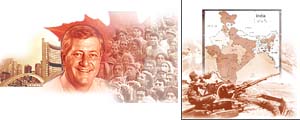 This is the second successive victory wrenched by the Progressive Conservatives in the face of bitter opposition. This victory is made sweeter by the fact that he has survived what most politicians in power dread: harsh cutbacks in public spending, sweeping reforms in electoral laws and the all-too-familiar anti-incumbency factor. But his efforts have paid dividends -- Ontario has low taxes, more jobs and a booming economy. Harris had the courage to take the jump and he has reaped a windfall. What is of particular interest to a casual observer from India is the sweeping electoral reforms ushered in by Harris during his previous term. Disregarding criticism (of the sort we hear from our politicians and read on the editorial pages of our newspapers), he reduced the campaigning period from five to three weeks; raised spending limits; and, removed the existing ceilings on contributions by individuals and corporations. Most importantly, in an effort to cut spending on the upkeep of legislators both serving and retired, his government reduced the number of seats from 130 to 103. In India, all this would send shivers down the collective spines of our politicians and send a rocket up the collective derrieres of our editorial commentators. "Indoo" hypocrisy demands that our politicians wear the badge of poverty while living off the taxpayers' money; that they mouth pious inanities about the need to curb campaign spending while accepting tainted money from businessmen who in any other country would be behind bars for multiple violation of laws; and, that they fudge their election accounts to demonstrate compliance with laughable ceilings imposed by the Election Commission whose members have absolutely no idea how much it costs to contest a municipal election, leave alone a general election. The armed conflict in the icy, barren wilderness of Kargil is of no interest in this part of the world. Surprising, though, since Canada had struck a sanctimonious posture on our nuclear tests and imposed sanctions against us. While other sanction-imposing capitals were quick to realise that India was not dependent on Western patronage and engaged New Delhi in dialogue, Ottawa continues to ride the high horse of moral principles and pretended concern about the nuclear tests leading to a nuclear holocaust in the sub-continent. Yet, it is amazing how little informed officials are about the latest from the Kargil front. If their concern had been genuine, as also the concern of the Canadian newspapers which had virtually reproduced the editorial line of The New York Times and The Washington Post in their reaction to the nuclear tests, then the ongoing Kargil conflict would have been reflected in some form or the other in local media. Yes, there was Salman Rushdie on the editorial page making an idiot of himself by trying to write on sub-continental politics of which he so obviously knows so little and predicting that Kashmir would soon be reduced to nuclear debris. And there was Sunanda K Datta-Ray writing from his perch in Singapore about events in distant Kargil. Little wonder that Canadian foreign policy defies reason and logic. It is reflected in Canada's current predicament. Having dutifully followed the Americans into the Kosovo muddle, the Canadians suddenly find themselves left out of crucial discussions and deliberations. On the other hand, column after column is dedicated to stuff that we in India would tend to consider inconsequential but seems to be of great popular interest in Canada. For instance, with Sex and the City making its debut on Canadian national TV, newspapers carried not merely the news on the front page but also lengthy features on the inside pages. John Allemang, celebrated television critic whose articles are read with deadpan seriousness in Canada, introduced the new show (of which we in India who follow TV trends in foreign shores have known for quite some time) in remarkably telling prose for whose clarity I envy him. "There's precious little innocence left in the Manhattan lived in by the four -- there's no other word for it -- horny women in Sex and the City," he writes on the morning the show is slated to make a splash, "This is a place where primness is defined as a reluctance to have anal sex too early in a relationship -- upsets the power balance -- and friends boast to friends 'There was so much skin, it was like a Shar-Pei'." Sex and the City is a late night television serial that has been making waves for more than a year now, thanks to, if I am not wrong, Fox TV. It is about four (single) thirtysomething women, each an achiever and go-getter, who decide to have, to quote my friend John Allemang, "sex like a guy". It is all about the "age of un-innocence." If you want to know what it means, see an episode on pirated video. The Government of India would be shocked to know that women could harbour such wicked thoughts and be interested in anything but blouses whose sleeves touch the wrist. So we can't look forward to Sex and the City on either Doordarshan or Star TV. I have two choices for a tailpiece. But since I am not able to make up my mind, I will let you have both of them. The Supreme Court of Canada has recently ruled that people in same-sex relationships are spouses for the purposes of the Family Law Act of Ontario. What this means is that insurance companies will have to shell out monies to gay partners which would have, till now, gone to properly married spouses in heterosexual marriages in the event of a partner's death. There is also state liability in terms of benefits. This has prompted the moral crusaders here to launch a vitriolic attack. But they are fighting a losing battle, and they know it. And now there is Leah McLaren, whose 'Fifth Column' is read avidly by all liberals and crusaders. In her latest column, she has argued in favour of granting women the right to sell their ova. If men can sell their sperm, why can't women, she asks. The answer, according t