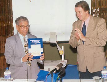 Dr V R Panchmukhi, director general, research & information system for non-aligned and other developing countries, launching the Economic & Social Survey of Asia and the Pacific 2000 in New Delhi on Monday. Also seen is Feodor Starcevic, Director UN Information Centre.