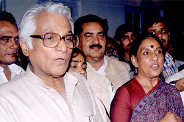 HOME | NEWS Tehelka's spicy video expose proved too hot for Defence Minister George Fernandes who had to resign. He was reinstated recently. His confidante and Samata Party general secretary Jaya Jaitley was filmed spilling the beans about defence deals to undercover tehelka reporters posing as defence agents. Photo: Saab Press. |