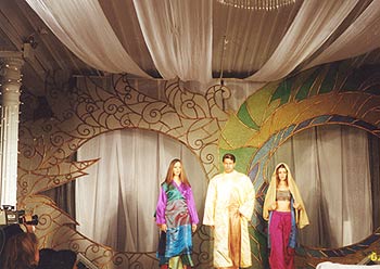 Mr India Aryan Vaid, flanked by Helen Brodie to his left, sporting designer Alia Khan's newest bridal couture line. Khan, who is the founder of Asian Andaz Inc -- a line of South Asian finery --