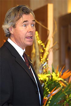 Canada's Minister for International Trade Pierre S Pettigrew makes a point during his visit to Mumbai with a trade delegation to hold joint seminars with corporates in the city on Monday.