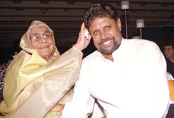 Wisden's Indian Cricketer of the Century Kapil Dev with his beaming mother, in New Delhi on Monday July 29.