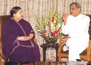 Tamil Nadu Chief Minister J Jayalalithaa and Karnataka Chief Minister SM Krishna meet in New Delhi on Tuesday, August 27 to discuss, among other things, the abductionof former Karnataka minister H Nagappa by Veerappan.