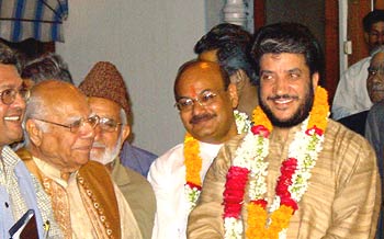 Jammu Kashmir Democratic Front leader Shabir Shah with the Kashmir Committee leader Ram Jethmalani in New Delhi on Thursday, August 29. Shah laid down his terms to participate in the Assembly Elections in Kashmir during his talks with Jethmalani.