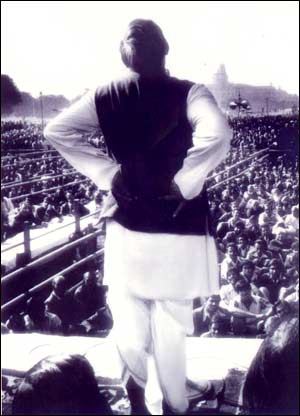 Put him in front of a crowd anywhere in the world even now! and watch the years melt away in an instant. Generations of politicians all over India have tried to model their oratorical skills on Vajpayee's legendary oratory. But truly, there can only be one Atal Bihari Vajpayee. Once at an election rally, when he was presented an ornate garland, he responded, "Main har (garland/also defeat) nahin, jeet lene aaya hoon." ALSO READ: 'You gave them 50 years, all I ask for is 5' Back | Next |
