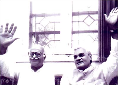 L K Advani once told rediff that Vajpayee remonstrated with him after the former told the BJP convention in Mumbai in 1995 that the latter would be the party's candidate for prime minister in the 1996 general election. "Aap ne mujhse poocha bhi nahin!" Vajpayee exclaimed. "Kya aap maante agar hum ne aap se poocha hota," Advani replied. Though rumours swirl about their crumbling relationship, the Advani-Vajpayee combo has endured, perhaps only natural in a relationship that goes back half a century. As Vajpayee told Goel he never forgets the day his party was handed a humiliating defeat in an election, after which Advani and he went to see a Hindi movie! Back | Next |