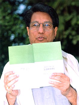 Ajit Singh, Union agriculture minister and president of the Rashtriya Lok Dal, releases his party's election manifesto in New Delhi on Tuesday, January 29. Singh's party is contesting the forthcoming assembly elections in Uttar Pradesh.