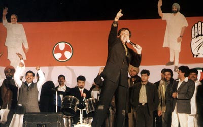Electioneering took on a whole new meaning when Bollywood star Govinda presented an entertainment programme at a Congress election meeting in Ludhiana, Punjab. More reports on Elections 2002 Photograph: Pradeep Mandhani