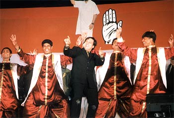 Film star Govinda and his troupe perform at a Congress rally in Ludhiana, Punjab, on February 10. The Congress, incidentally, is expected to make a come-back in the state.