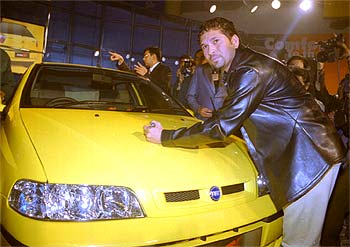 Cricket star Sachin Tendulkar autographs Fiat's new Palio model at the 6th Auto Expo in New Delhi on January 15.