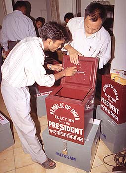 Election Commission staff check ballot boxes which will be sent to different states for the election of the new President of India on July 15.