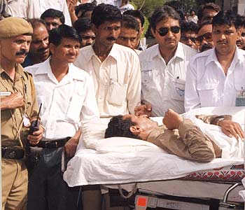 Kulwant Singh, an official at the Indian High Commission in Islamabad, being taken to the All India Institute of Medical Sciences in New Delhi on Thursday, June 6. Singh, who worked in the embassy's administration section, was abducted last Saturday by Pakistani security personnel and beaten up severely before being expelled for spying.