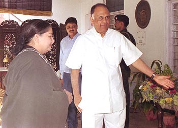 Krishen Chandra Pant, deputy chairman of the Planning Commission, with Tamil Nadu Chief Minister Jayalalithaa in New Delhi on Wednesday, June 12.