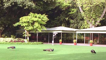Peacocks enjoy the greenery and quiet of a lawn at the prime minister's residence in New Delhi on Wednesday, June 12.