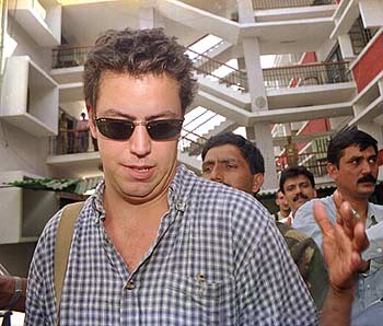 Time magazine correspondent Alex Perry leaves the Foreigners Regional Registration Office in New Delhi on Friday, June 21, after explaining his possession of more than one passport. Perry wrote an article questioning Prime Minister Atal Bihari Vajpayee's ability to control the nuclear button in view of his failing health, which got him into trouble with the authorities.