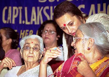 Presidential nominee Laxmi Sehgal accompanied by leaders from different women's organisations launches her election campaign in New Delhi on Wednesday, June 26, 2002.
