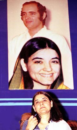 Minister of State Maneka Gandhi at a remembrance meeting to mark the 22nd death anniversary of Sanjay Gandhi in New Delhi on Sunday, June 23, 2002.
