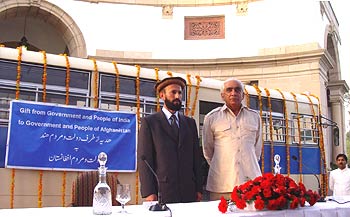 External Affairs Minister Jaswant Singh with Afghan Deputy Minister for Transport Syed Saji Muttafakir at a ceremony in New Delhi on April 29 to gift 25 buses to strengthen the public transport system in the war-ravaged country.