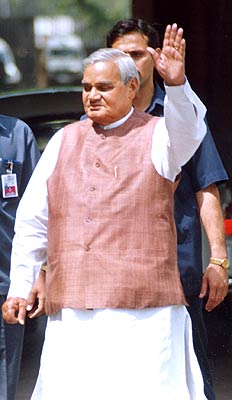 Prime Minister Atal Bihari Vajpayee enters Parliament House in New Delhi on Tuesday, April 30, for the debate under Rule 184 in the Lok Sabha on the violence in Gujarat.
