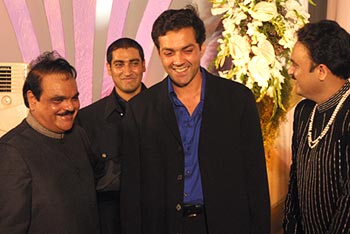 Another Bollywood star who came straight from the sets to wish the couple. Like Aishwarya Rai, Bobby Deol came from the sets of 23 March 1931-- Shaheed, where he plays legendary freedom fighter Bhagat Singh. Back Next |