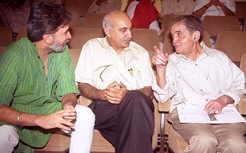 Tarun Tejpal editor of the Tehelka.com, M.J.Akbar editor of Asian Age and writer Nirmal Verma at the release of "The Humour & the Pity", an anthology of essays on V S Naipaul edited by Amitava Kumar at British Council in New Delhi on Wednesday, May 15.