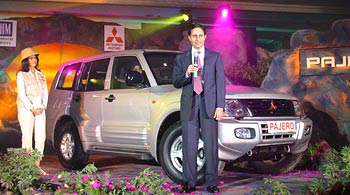 Hindustan Motors chairman C K Birla unveils the Mitsubishi Pajero made for the Indian market in New Delhi on Tuesday, May 21. The high-performance sports utility vehicle is expected to cost nearly Rs 34 lakh.