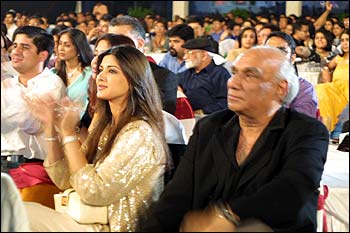 That the awards have caught the imagination of the industry professionals was borne out by the turnout. Among those present to cheer the winners were (from right) film director Yash Chopra and actress Sonali Bendre. |