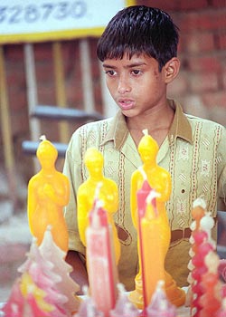 A young boy sells candles in New Delhi on Sunday, November 3, a day before Diwali.