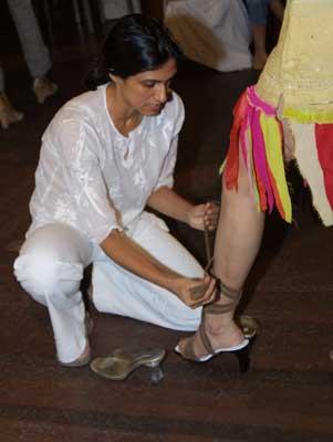 At her fitting sessions, Dhaka is particular about details. She personally accessorises her models and ensures the look is perfect when they walk the ramp.