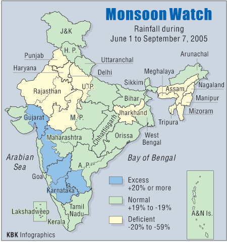 While most parts of the country received normal rainfall, parts of Gujarat, Maharashtra, Goa and Karnataka experienced heavy rains.