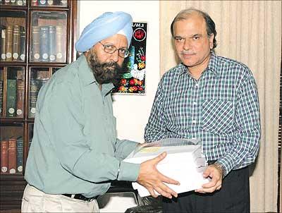 In keeping with our promise that your wishes would be handed over to the President, rediff.com Senior Associate Editor Onkar Singh (left) handed over five bound volumes of your greetings to Mr S M Khan, the President's Press Secretary, at Rashtrapati Bhavan recently.