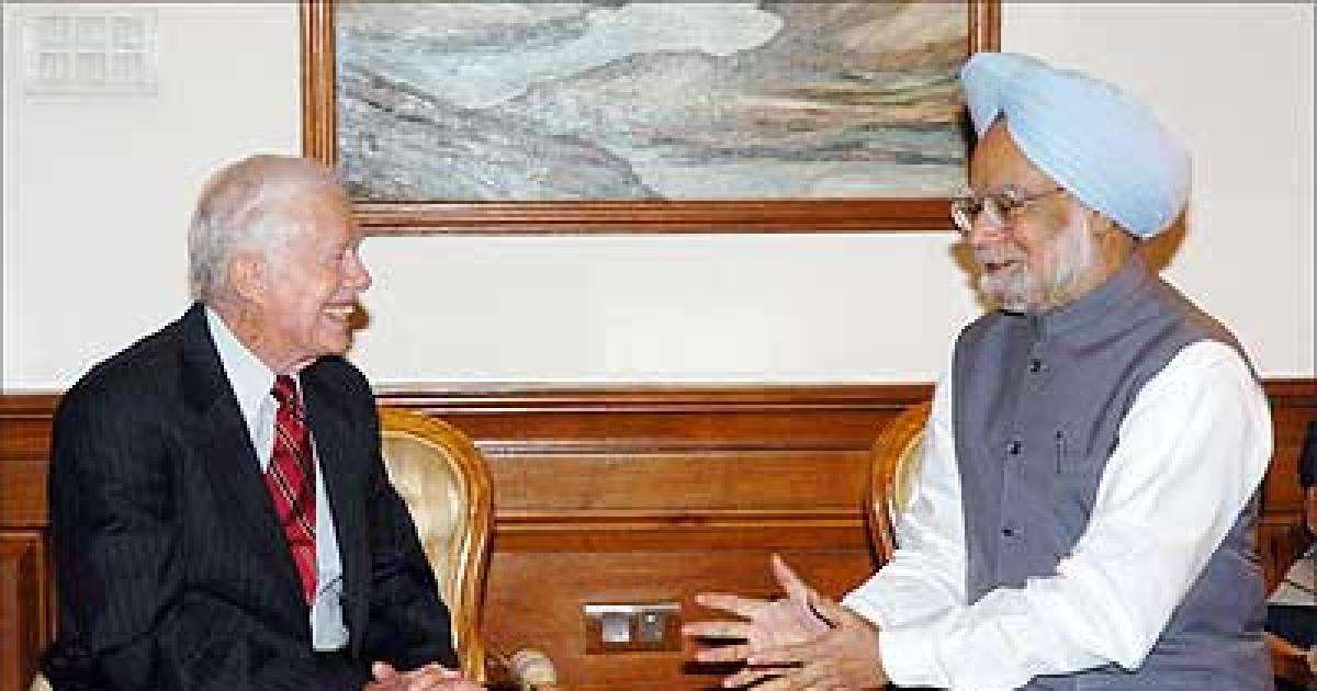 Former US President Jimmy Carter met Prime Minister Manmohan Singh on Friday in New Delhi.
