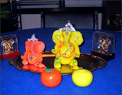 Seshu P Tyagarajan, Edison, New Jersey, USA, offers a photograph of playdough Ganeshas made by his kids, ages three and nine, with assistance from his wife.