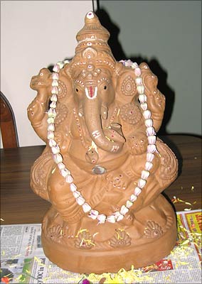 He says: This is the kind of Ganesha usually brought to South Indian homes in Karnataka and Tamil Nadu. It is made of clay and other materials and is completely eco-friendly. We prefer this Ganesha over the coloured Ganesha because that is our tradition.