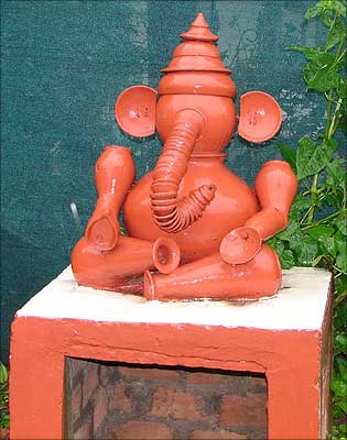 Shrinivas Kutumbale, Indore, Madhya Pradesh, offers a picture of a unique terracotta Ganesha.