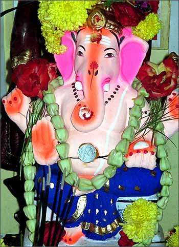 ari Saravanan has sent a photograph of the Ganesha who visited their house in Basavanagudi, Bangalore.