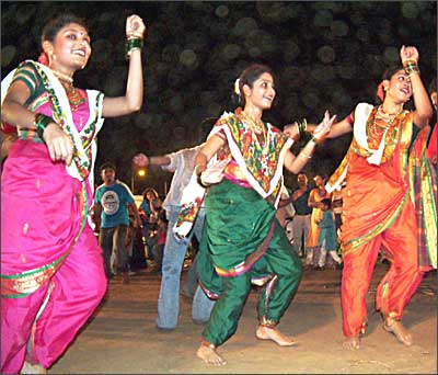 omen in traditional Koli dress sway to the dandiya beat.