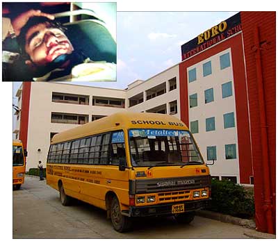 "Abhishek Tyagi, a Class 8 student of Euro International School had picked up a fight with two fellow students a couple of days ago on the school bus. They made up two days ago. But suddenly the two boys in a fit of anger killed Abhishek as he was about to board the bus back home," a senior police official told rediff.com.