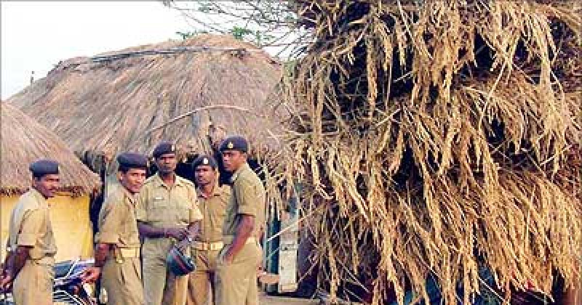 Image: Police personnel keep vigil in curfew-bound Phulbani district.