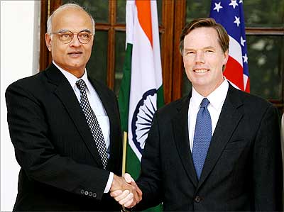 Image: US Under Secretary of State, Nicholas Burns (right) with Indian Foreign Secretary Shiv Shankar Menon .Photographs: Raveendran/AFP/Getty Images
