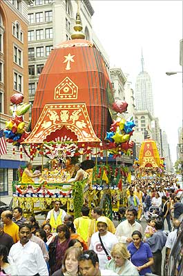 For 29 years, the ratha yatra organised by the International Society for Krishna Consciousness has remained one of the most celebrated of public religious ceremonies in New York, and it has also become the only Hindu ceremony of its kind that finds its way through Manhattan's Fifth Avenue. In fact, it is the only Hindu ceremony of its kind in the city.