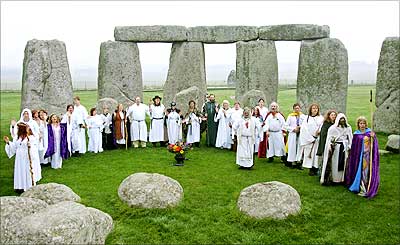 Druids conducted a Samhain (harvest) blessing ceremony at the Stonehenge, the 5,000-year-old site of circularly-placed stones in Wiltshire, southern England, late last year to mark Bernard Weber's visit. Weber visited each of the 21 sites shortlisted as one of the seven wonders. Druids once worshipped different aspects of nature like stars, the moon and the sun; new Druids are called ne-Druids.