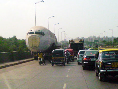 Where else do stockbrokers launch an agitation because they believe a statue outside the stock exchange has caused the market to crash? India, 61: The icons that make India Where else will you see the driver of an Audi A4 swearing at a bullock cart driver in the middle of a busy intersection? And let's not even mention that incident where a truck toting a decommissioned Boeing 737 through the streets of Mumbai just abandoned it halfway. Why? The driver got lost! GPS? Ha ha ha! The only message our truckers are familiar with is 'Horn OK Please.' No, even we don't know what it means. Welcome to our lives, a mixture of contradictions so extreme they have even us wondering! A pretty girl is an 'item,' street food is 'jhakaas and we want to 'make friendship' with everybody who comes our way (note to the roadside Romeos -- lay off already!). And we're politically incorrect to the tee -- if you deign to strike up an argument about that, I have just three words for you -- paape, macapav and yandu gundu (yes, that offensive last term, derogatory as it is, is very much in use -- don't believe me? Google it!). For those of you who are either smiling by now or still puzzling over the whole 'Horn OK Please' bit for the umpteenth time (you know who you are!), cheers. For those of you who haven't taken any of the things you just read in the right spirit -- lump it. Because hum nahin sudhrenge. Text: Sanaya Dalal. Image: The Boeing jet being transported through a busy Mumbai street. Photograph: Rajesh Karkera Also check out: The Rediff Diary